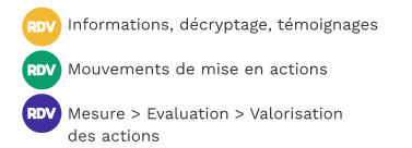 Ces RDV peuvent afficher leur vocation particulière, indication qui sert de balise sur le Terrain d'enjeux Planet-R pour celles et ceux qui sont impliqués dans le programme Aktion Planet-R.